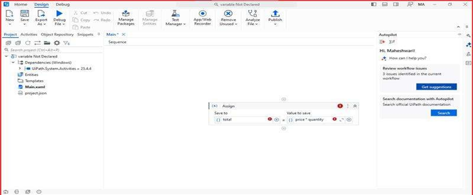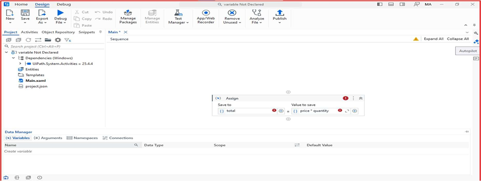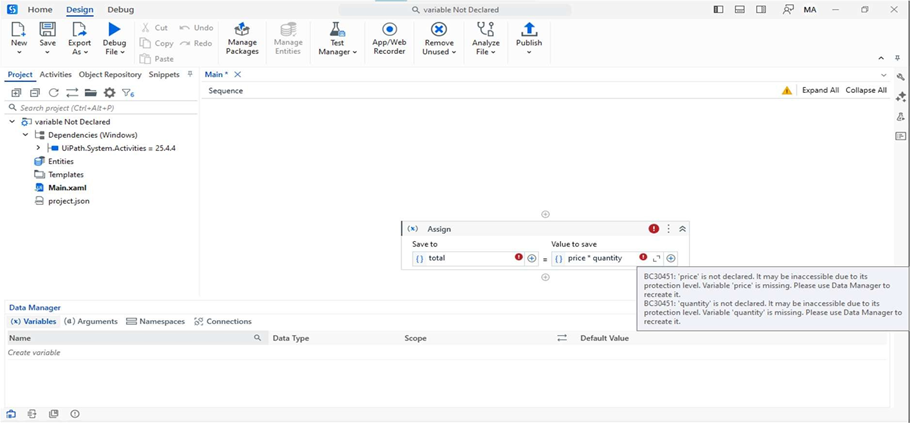 UiPath shows an error: “Variable is not declared.”