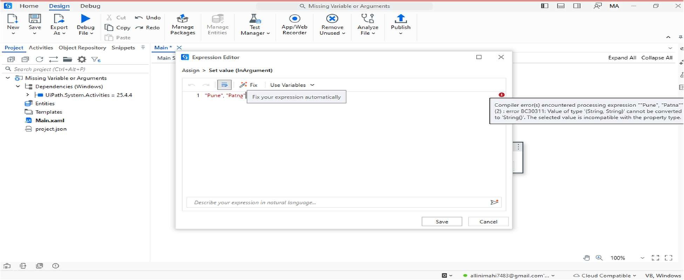 Auto-Fix in UiPath Studio operates as a real-time assistant that constantly evaluates your workflow as you build, helping identify and resolve issues before they become roadblocks. It’s tightly integrated into the Studio development environment, making the process of fixing errors almost seamless