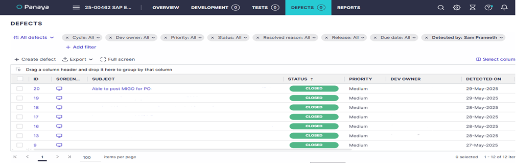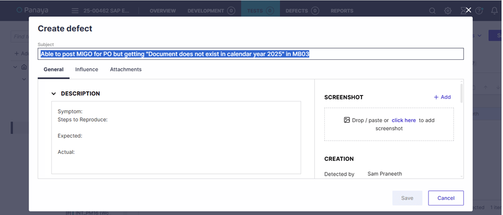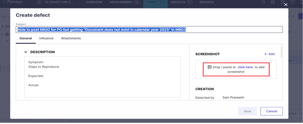 How to Create a Defect in Panaya