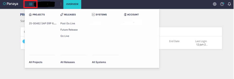 4. Click on the three horizontal lines (menu icon) as shown in the screenshot to navigate your project.