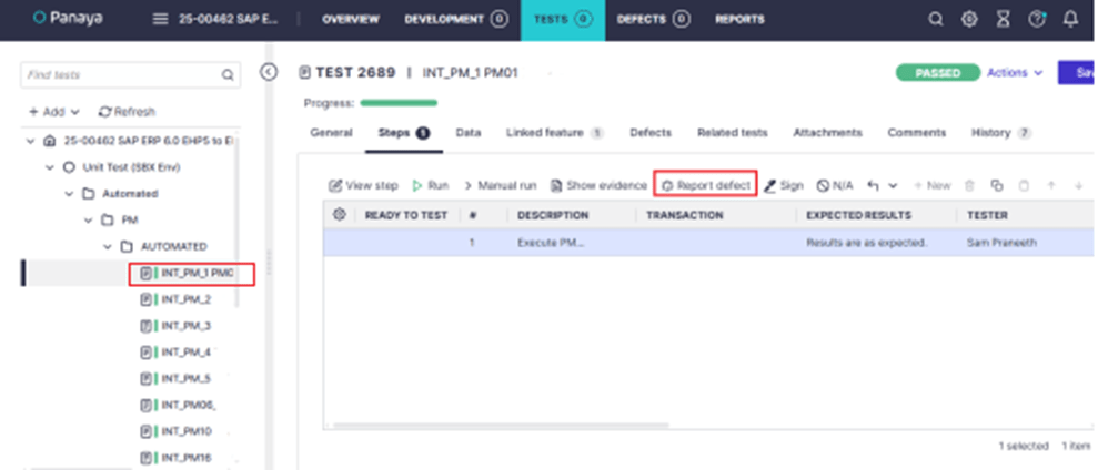 6.Click on the relevant script and select “Report Defect” to raise a new defect.