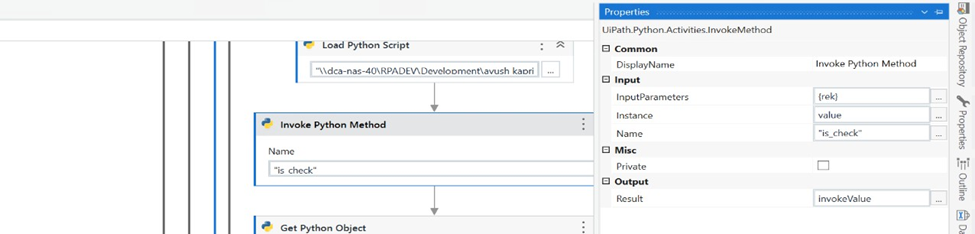 Result: The output returned by the Python function is stored in a UiPath variable (e.g., invoke Value) for further use in the automation process. The variable (e.g. invoke Value)