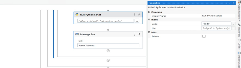 UiPath provides several activities to interact with Python scripts: