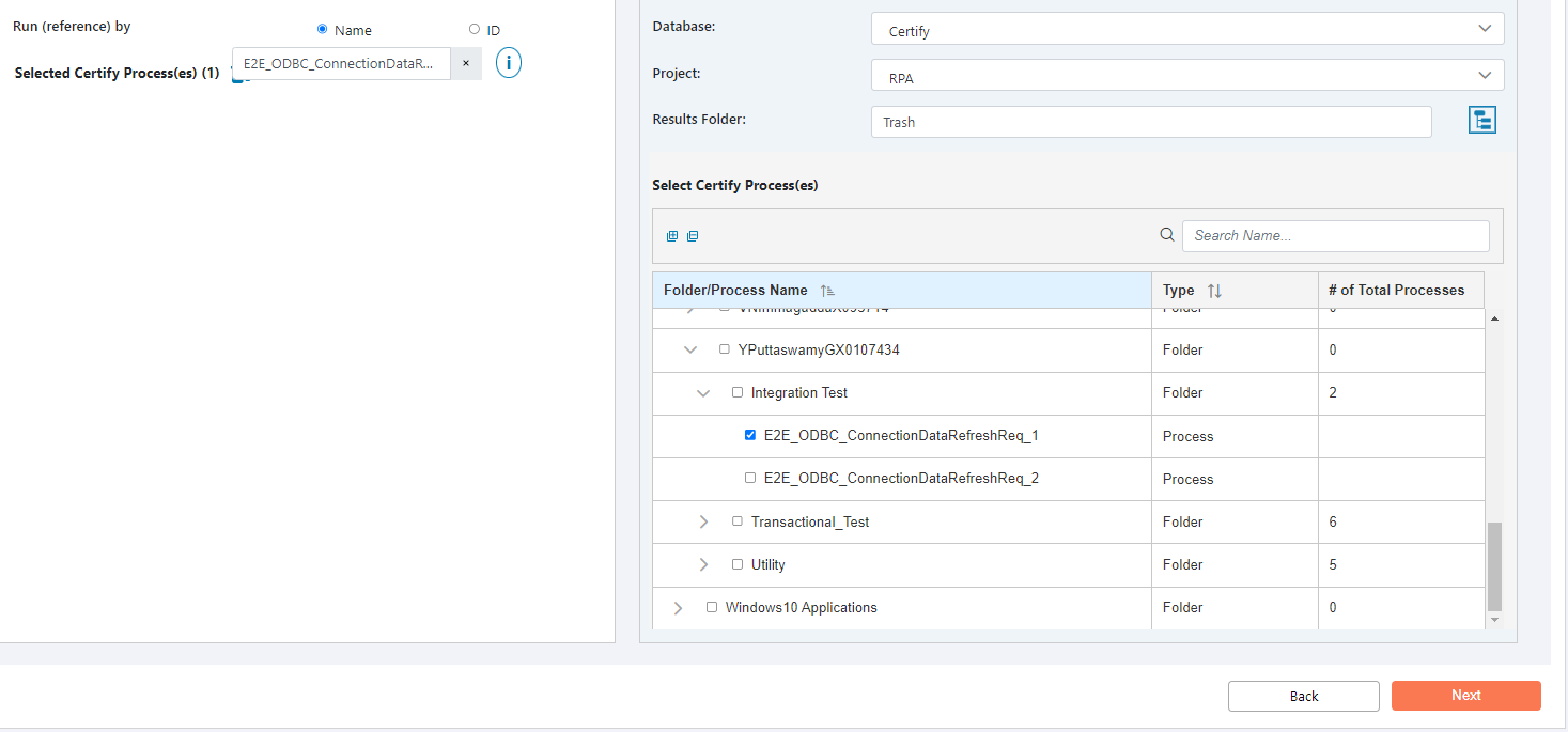 9.Process can be selected by navigating to required path by navaigating through tree structure and select checkbox so that process will be selected.Elsethrough Search field provided by giving process name as shown in below screenshot