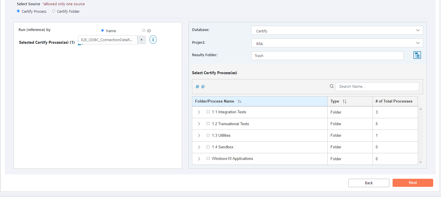 6.Now we can select a required process name to create a suite by Certify Process radio button checked