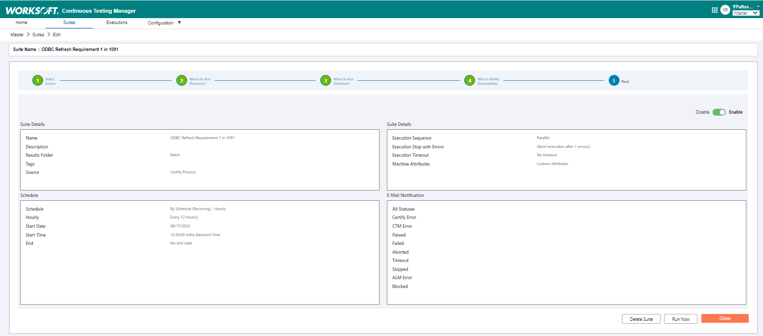 - Now completed creating suite and the Final screen opens with the suite summary.