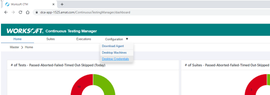 After you have added your desktop machines and created desktop credentials, you will now create Continuous Testing Manager (CTM) suites. A CTM suite is a Certify process or a group of Certify processes that you will schedule to execute on the CTM Agent.