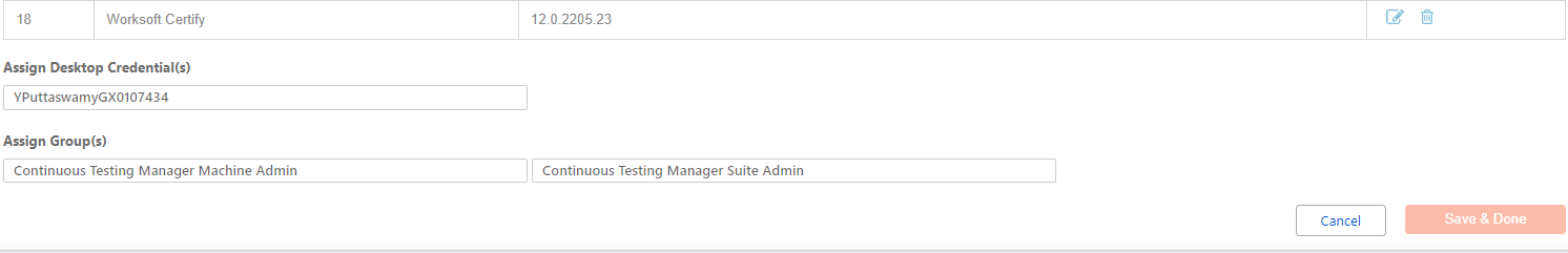 After that needs to click on Edit button in Action column, Assign Desktop Credentials.