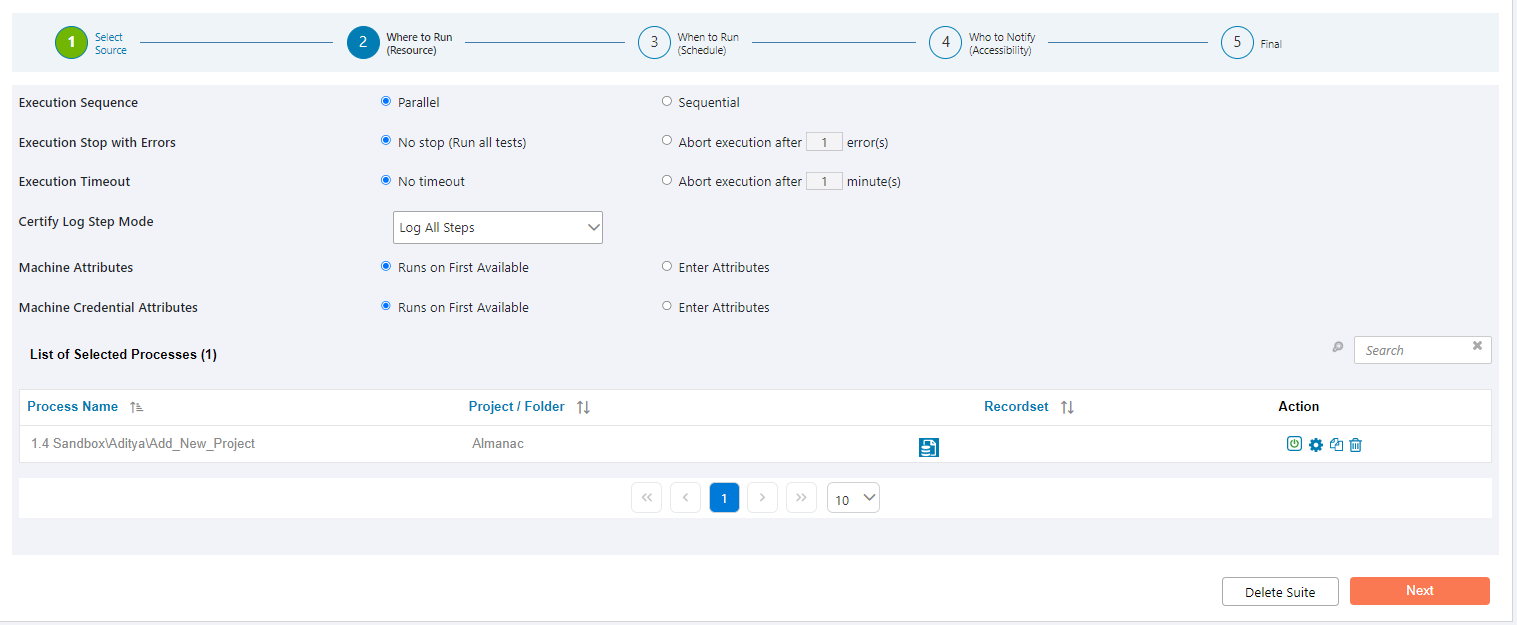 By selecting this radio button we cannotscheduleexecute suite.You can manually execute the suite after you have completed configuration.
