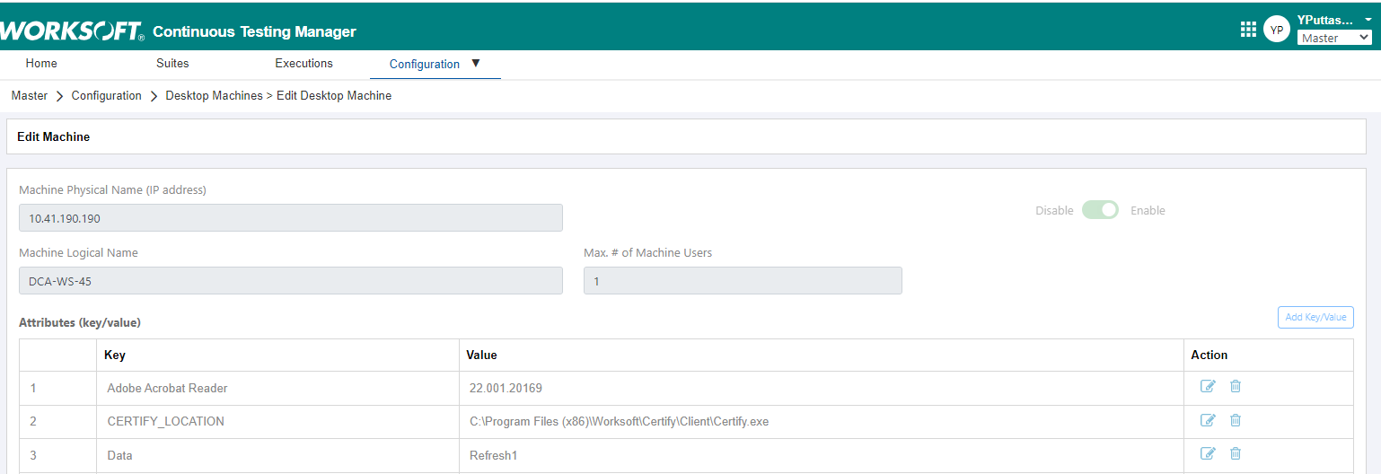 Can add Key and value by using Add Key/Value button so this can be used while creatingsuites.Click on Save and Done button.Machine Status should be enabled, for triggering execution in required RDP.