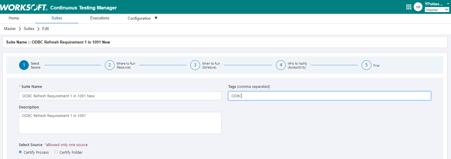 After you have added your desktop machines and created desktop credentials, you will now create Continuous Testing Manager (CTM) suites. A CTM suite is a Certify process or a group of Certify processes that you will schedule to execute on the CTM Agent.